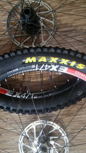 Πωλούνται DT τροχοί 26”. Στεφάνια DT swiss ΕΧ471 καινούργια χωρίς βαθουλώματα. Ακτίνες DT swiss. Κέντρο πίσω DT Swiss 240 Spline με ratchet 12x142. Εμπρός κέντρο Superstar Components 20mm και έξτρα ένα ζευγάρι ρουλεμάν (είχαν αγοραστεί προληπτικά και δεν έχουν χρειαστεί). Βαλβίδες tubeless Superstar Components αλουμινίου. Μαζί δίνονται τα λάστιχα τα οποία είναι και τα δυο tubeless. Εμπρός Maxxis Minion DHF 2.5 3C EXO maxx terra τεσσάρων μηνών. Πίσω Maxxis High Roller II 2.4 EXO με δυο βόλτες μόνο.