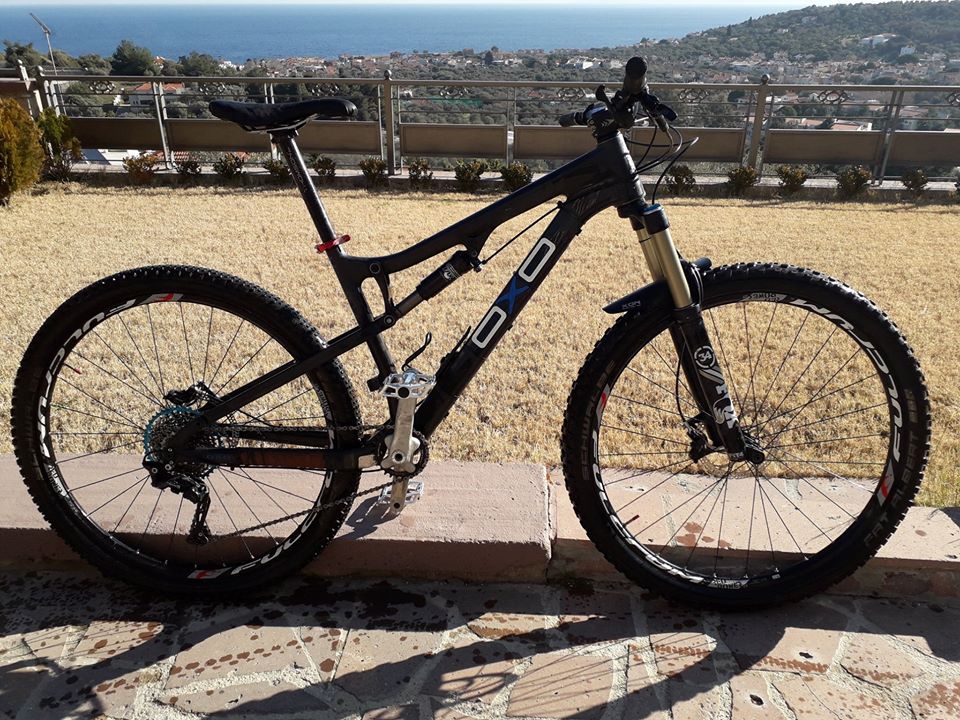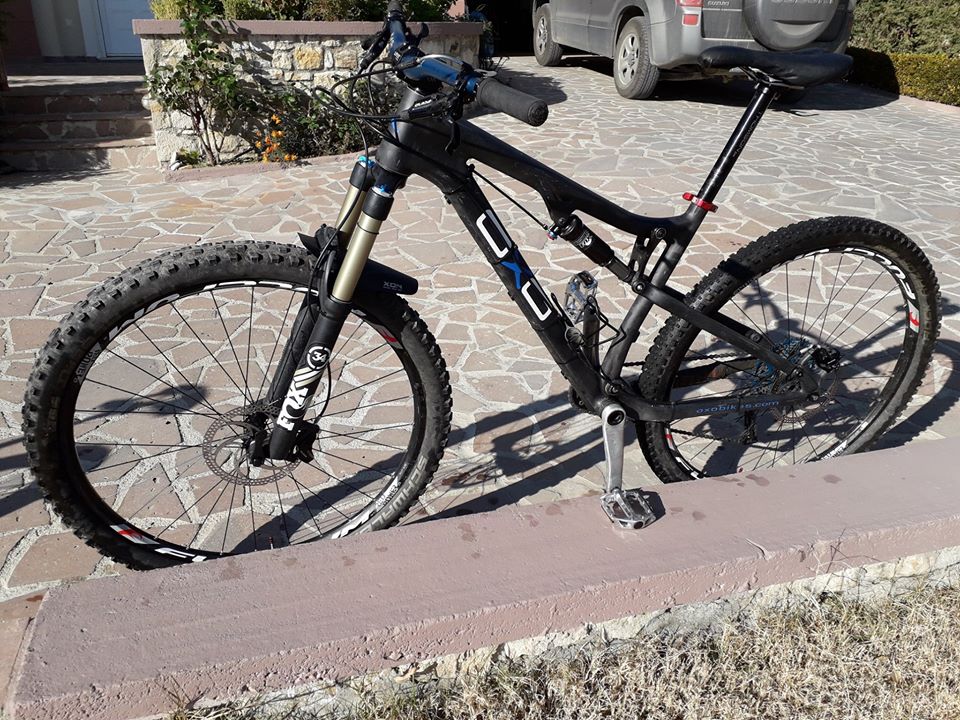 Πλαίσιο OXO bikes, (made in spain) 29άρι full carbon Medium , διαδρομές 130 πίσω fox ctd κλείδωμα στο χέρι, 140 μπροστά Fox 34 FIT4 με κλείδωμα, μετάδοση 1 χ 11 (11-42) , τετραπίστονα φρένα sram guide 180 . Βάρος 12 χλγ κατάλληλο για ύψος 175-185 Τιμή: 1200€