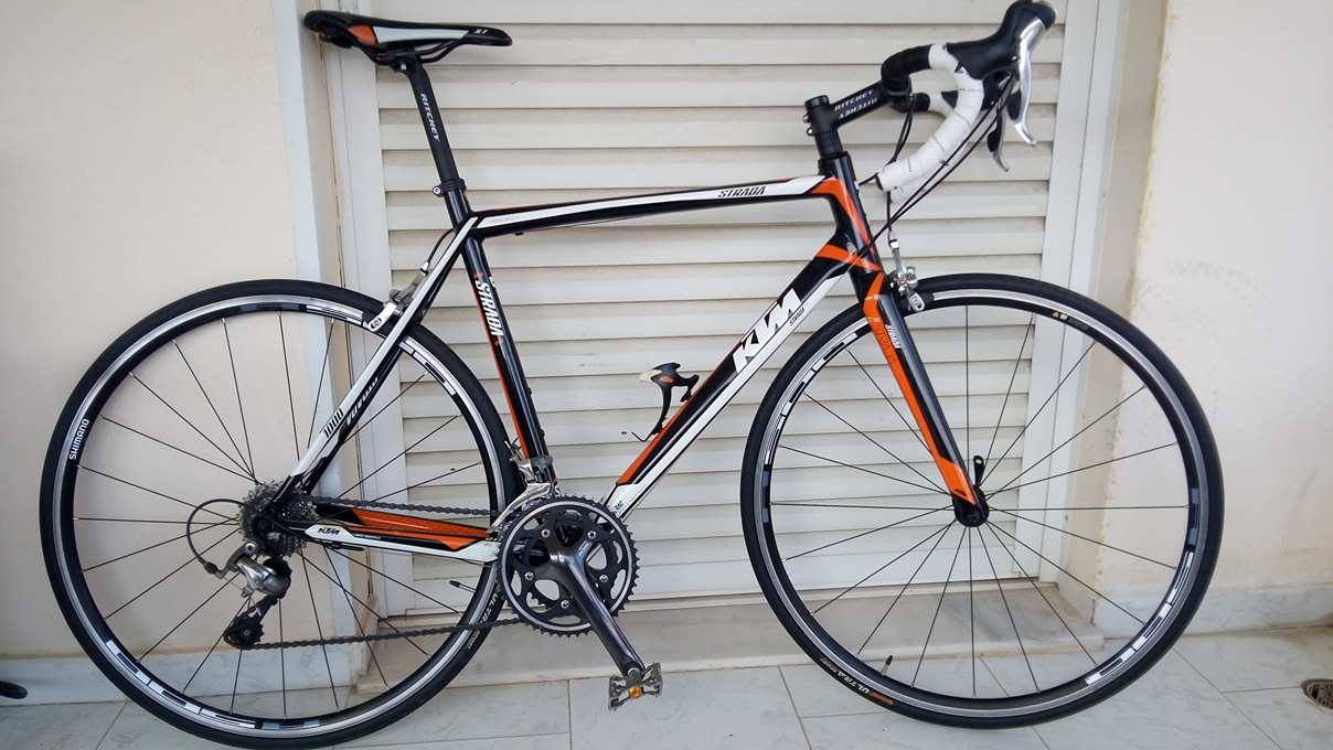 Πωλείται κούρσα KTM Strada 1000 No 57 για ύψος 1.80-1.89. Τροχοί Shimano R500. Λάστιχα Continental Ultra Sport 700x23. Φρένα, Χειριστήρια, Εμπρός ντεραγιέ Shimano Tiagra. Δισκοβραχίονας , πίσω ντεραγιέ Shimano 105. Λαιμός τιμόνι παλουκόσελο Ritchley. Πεντάλ Look keo. Τιμή: 470€