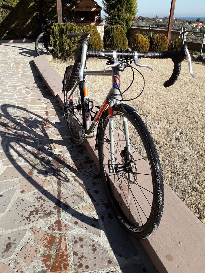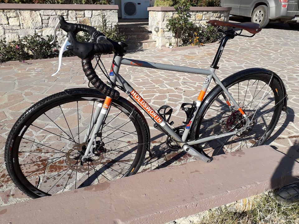 Πλαίσιο HOLDSWORTH ELAN Νο 52, cr-mo 4130 με εσωτερική αντισκωριακή προστασία, μηχανικά δισκόφρενα 180 με διπλές μανέτες, μετάδοση ΜΤΒ 1χ11 (11-40), ελαστικά specialized 700 χ 33 (χειμερινά), σελα δερματινη BROOKS, λασπωτήρες μεταλικοί. Μαζί θα δωθεί σετ ελαστκών continental 700 x 23 καλοκαιρινά, για ύψος 170 – 180 Τιμή: 500€