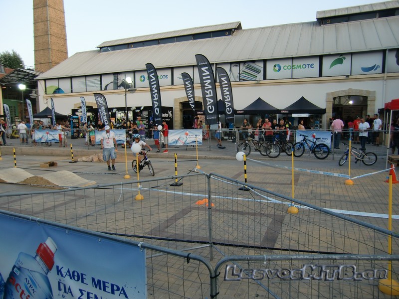 Το πρώτο πράγμα που αντικρίσαμε όταν μπήκαμε ήταν μια τεραστία σκηνή και μια ειδικά διαμορφωμένη πίστα για να δοκιμάζουν μικρά παιδιά τα ποδήλατα βουνού .....καλή αρχή! Το καλύτερο όλων ήταν ότι κατά την διάρκεια όλης της έκθεσης η ούρα από παιδιά για βόλτα στην πίστα δεν τέλειωνε ποτέ.