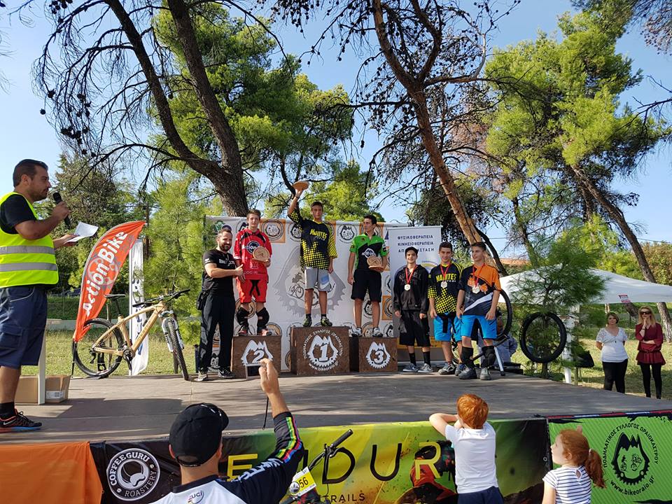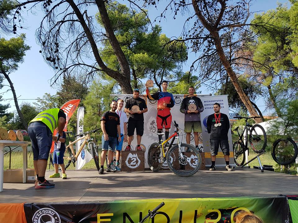 Σήμερα επέστρεψαν οι 3 από τους 4 Μυτιληνιούς ποδηλάτες που έτρεξαν στον 2nd Enduro Race Event στο Ωραιόκαστρο και μαζί με θετικά σχόλια, ωραίες ποδηλατικές εικόνες και πολλή τροφή για συζήτηση έφεραν και ένα χρυσό κύπελλο. Ο Παναγιώτης Σαμαράς, ακόμα και με θλάση στο πόδι, κατάφερε να κυριαρχήσει στην κατηγορία των Βετεράνων και με χρόνο 16’ και 22’’ ανέβηκε στο υψηλότερο σκαλί του βάθρου. Σημαντικές είναι και οι θέσεις των Αναγνώστου, Κακαγιάννη και Βουρσκούκη που τερμάτισαν στην 10, 17 και 19 θέση αντίστοιχα. Λεπτομέρειες του αγώνα θα παρουσιάσουμε στις επόμενες μέρες.