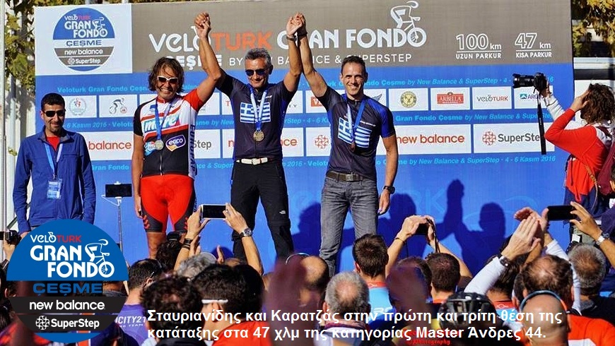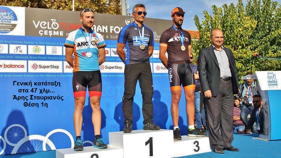 2 αγώνες. Ένας 47 χιλιομέτρων και ένας 100 χιλιομέτρων. 837 αναβάτες διαγωνίστηκαν 86 γυναίκες και 751 άνδρες ποδηλάτες σε διαφορετικές ηλικιακές κατηγορίες. Στον μικρό αγώνα μήκους 47 χιλιομέτρων, έτρεξαν 312 άνδρες και 54 γυναίκες. Στην γενική κατάταξη 1ος στα 47 χλμ Veloturk Gran Fondo Cesme Turkey ήταν ο Αριστείδης Σταυριανός, από τη Χίο. 3ος στην ίδια κατηγορία ήταν ο Σταύρος Καρατζάς που ανέβηκε στο βάθρο μαζί με τον Άρη Σταυριανό. 3ος στην κατηγορία του ο Steffen Streich και 15ος γενικής κατάταξης στον μεγάλο αγώνα των 100 χιλιομέτρων. Από τη Λέσβο, επίσης πολύ καλή εμφάνιση είχε κι ο Βαγγέλης Βουλγαράκης καταλαμβάνοντας την 89η γενικής και 14η στην κατηγορία του.