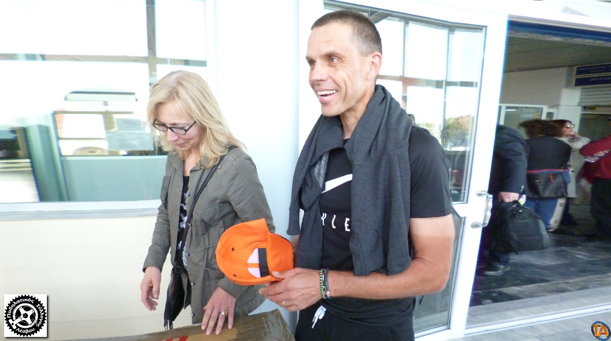 O Στέφανος πάτησε το πόδι του στη Λέσβο, ένα μήνα μετά την αναχώρησή του για την Αυστραλία και τη συμμετοχή του στο Indian Pacific Wheel Race. Αφού διέσχισε με το ποδήλατό του την χώρα των καγκουρό από δύση προς ανατολή μέσα σε 17 μέρες 10 ώρες και 7 λεπτά, ξεκουράστηκε λίγες μέρες στο Σίδνεϊ και μπήκε στο αεροπλάνο για Ελλάδα. Την Τρίτη 11 Απριλίου και ώρα 17:55 το αεροπλάνο του προσγειώθηκε στο αεροδρόμιο της Μυτιλήνης. Εκεί ήταν η οικογένειά του και μέλη του ποδηλατικού Συλλόγου Λέσβου για να τον υποδεχτούν, να τον καλωσορίσουν και να τον συγχαρούν. Αφού μας αφηγήθηκε ιστορίες από την Αυστραλία και μάθαμε από πρώτο χέρι τις δυσκολίες τα προβλήματα και τις αντιξοότητες που πέρασε στο ταξίδι των 5.471 χιλιομέτρων από το Πέρθ στο Σίδνεϊ, αυτές που δεν ξέραμε και δεν μπορούσαμε να φανταστούμε, αναχώρησε για το χωριό του τη Στύψη...