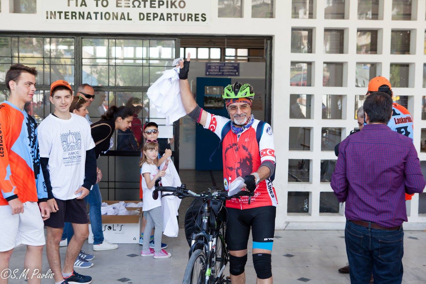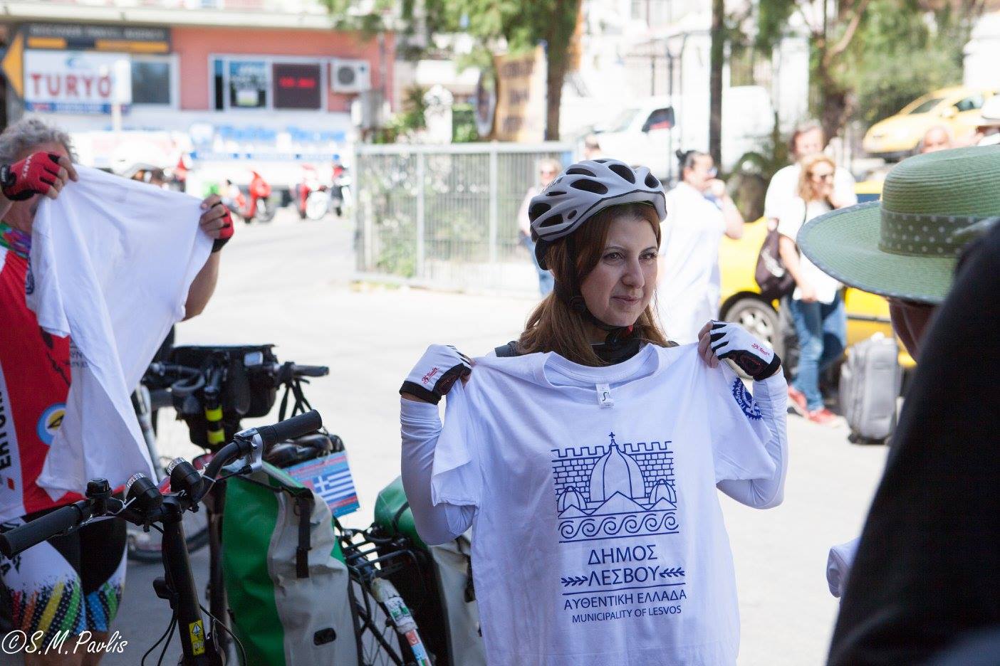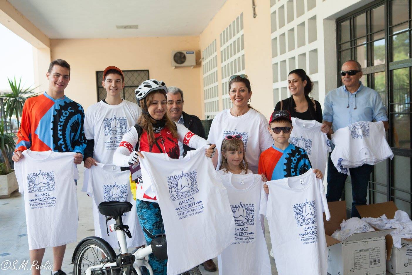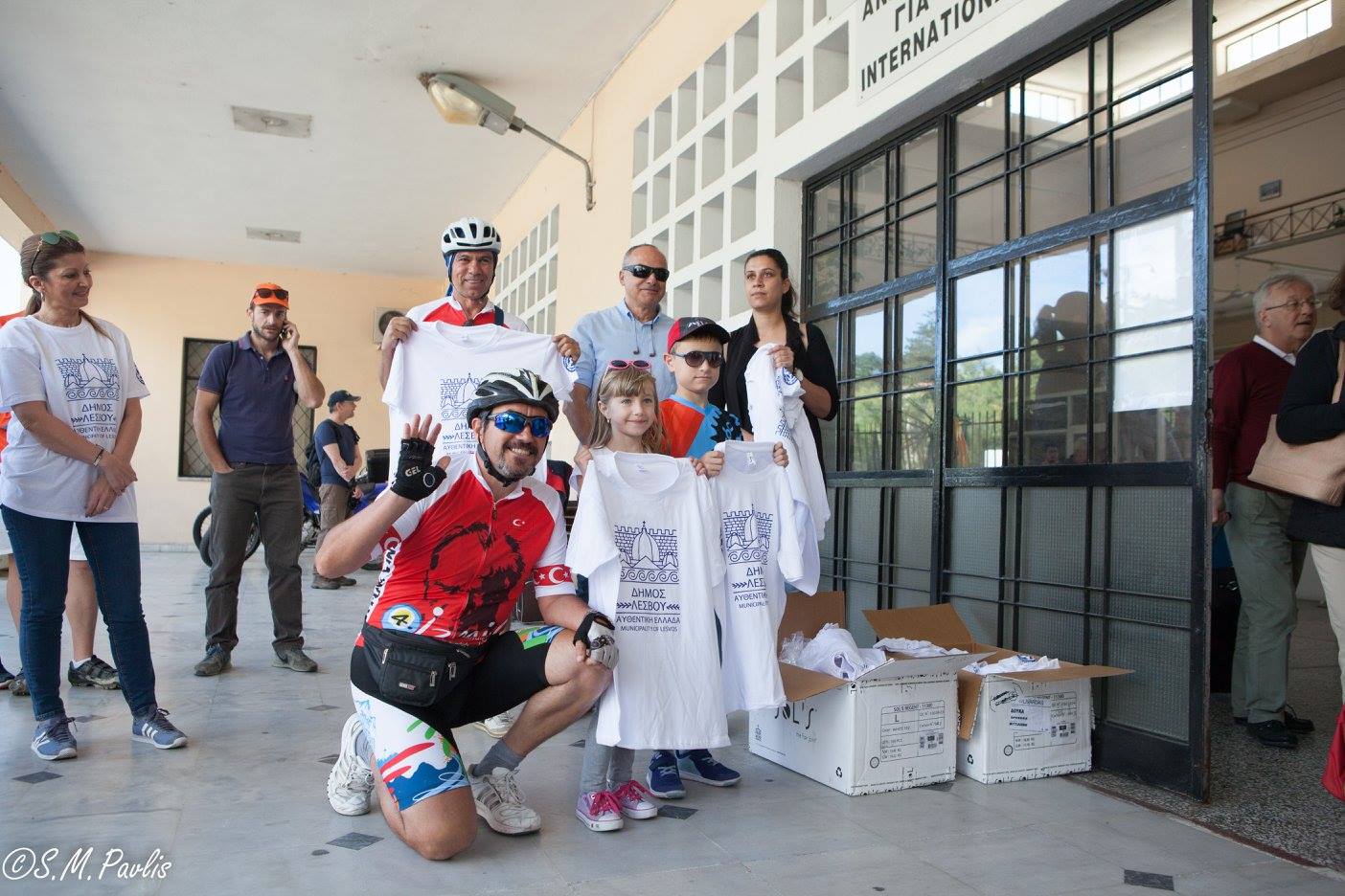Τους ποδηλάτες καλωσόρισε επιτροπή του Δήμου Λέσβου και μέλη του Ποδηλατικού Συλλόγου Λέσβου. Τους δόθηκε αναμνηστική μπλούζα και με χαρά ανταλλάξαμε στοιχειά επικοινωνίας με πολλούς από αυτούς.