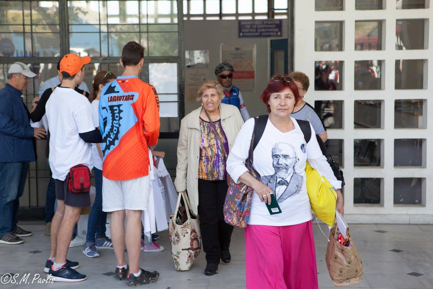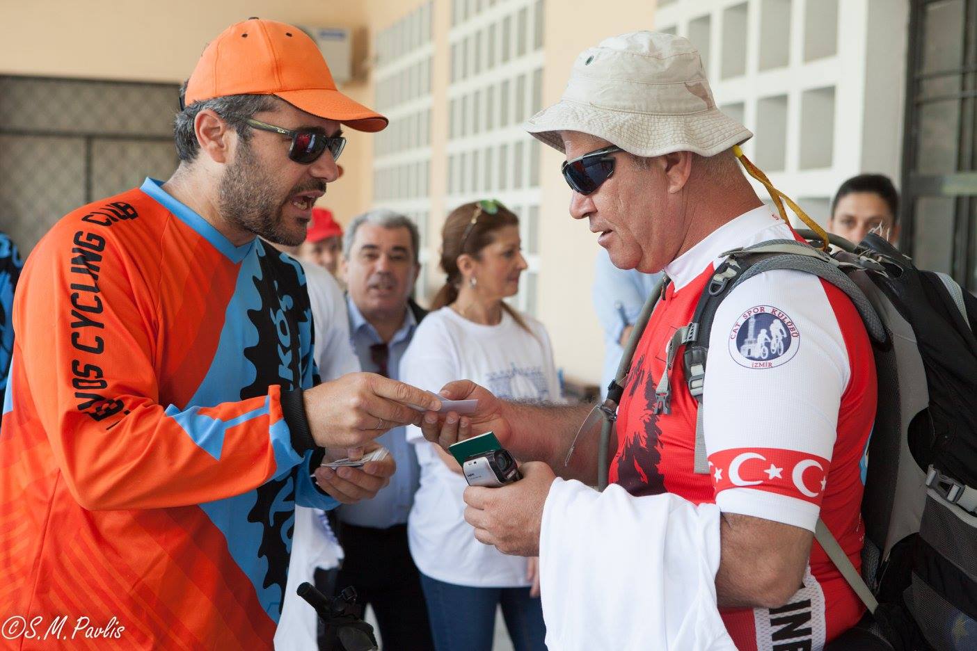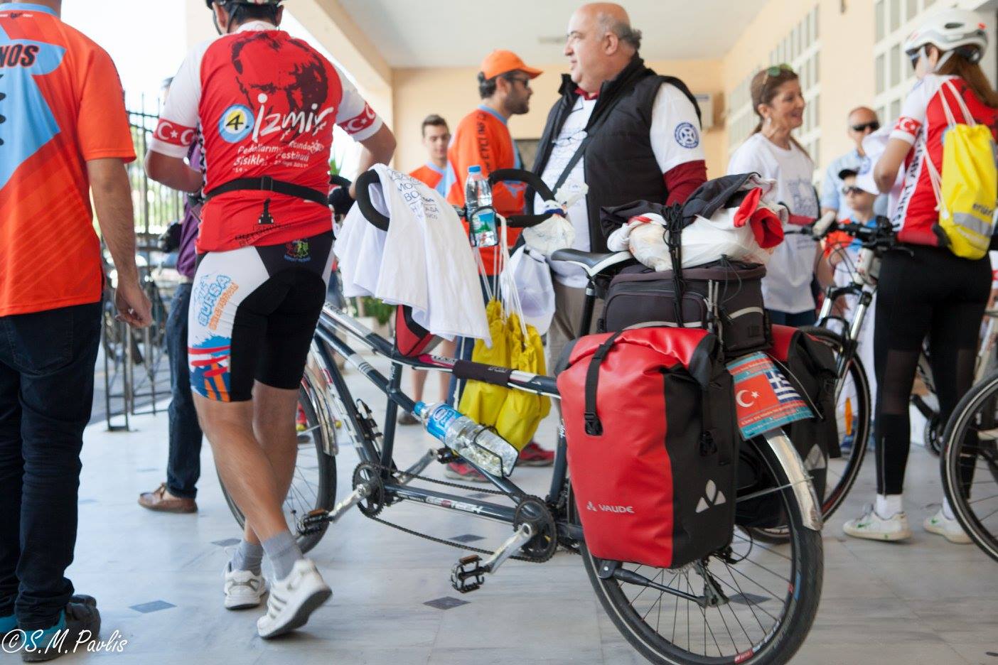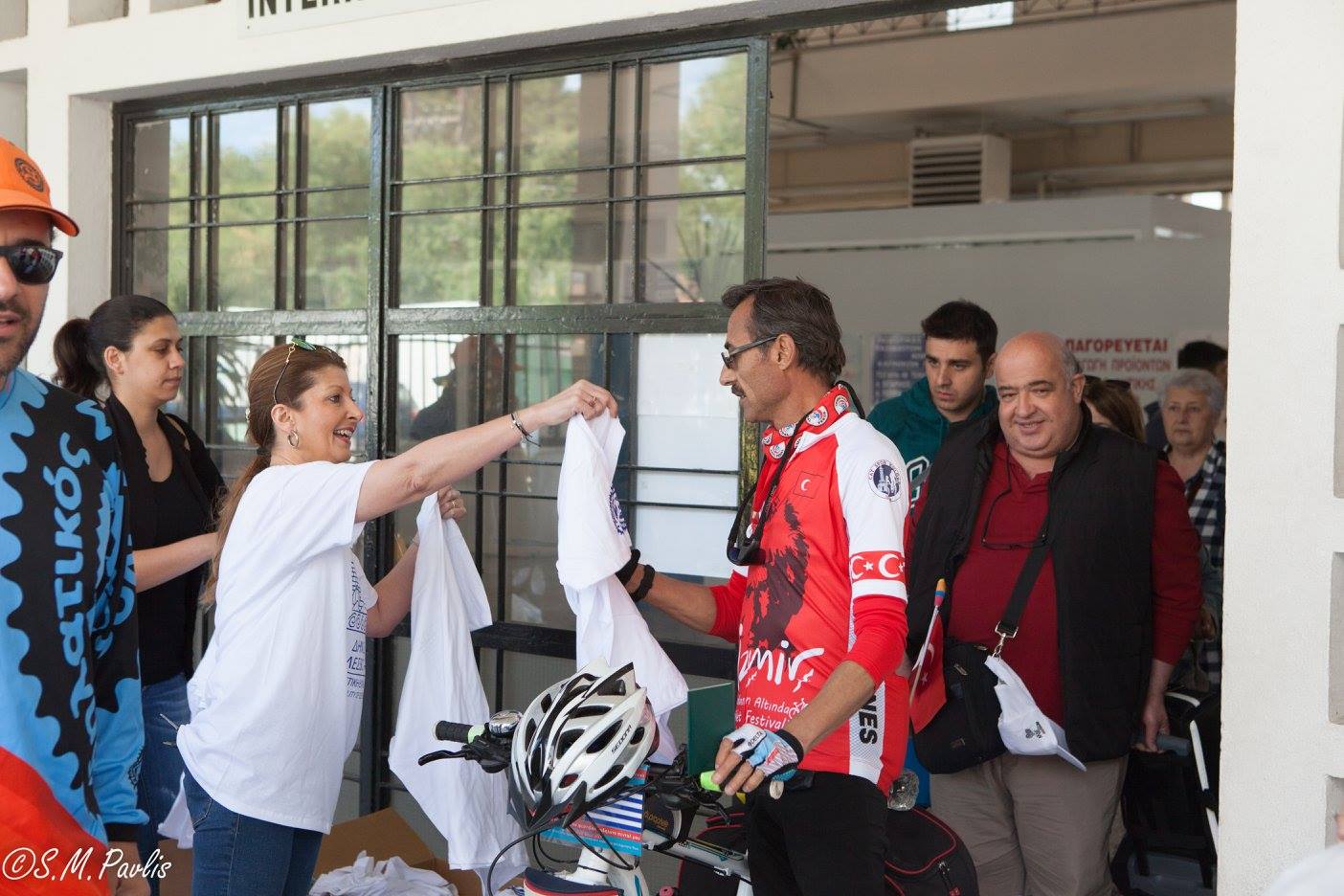 Τους ποδηλάτες καλωσόρισε επιτροπή του Δήμου Λέσβου και μέλη του Ποδηλατικού Συλλόγου Λέσβου. Τους δόθηκε αναμνηστική μπλούζα και με χαρά ανταλλάξαμε στοιχειά επικοινωνίας με πολλούς από αυτούς.