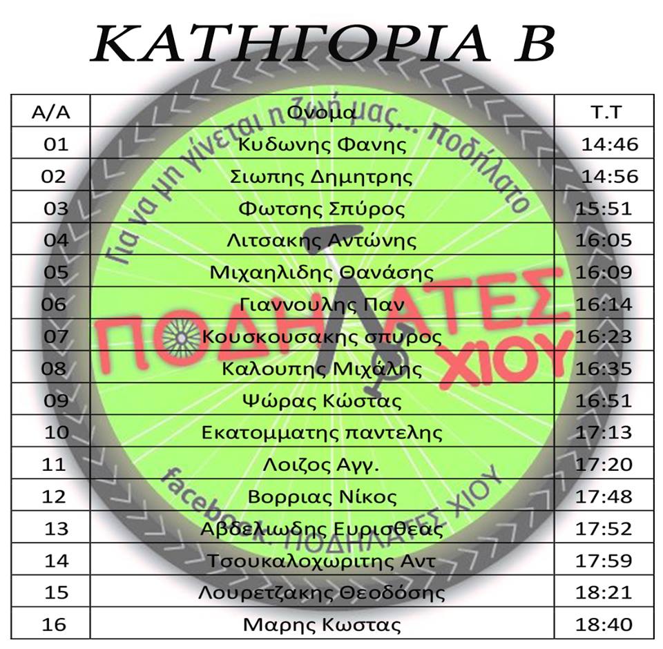Ο Ποδηλατικός Σύλλογος Λέσβου ευχαριστεί τους γείτονες Χιώτες για την φιλοξενία και τους αθλητές του για τις διακρίσεις. Δείτε τα αποτελέσματα στις φωτογραφίες.