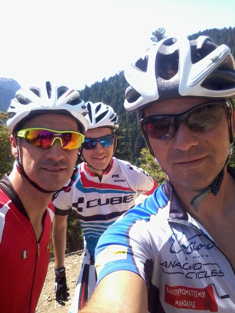 Η αποστολή του ΠΟ.ΣΥ.ΛΕ. ξεκίνησε από την Μυτιλήνη το πρωί της Παρασκευής με φορτωμένα 4 ποδήλατα στο δικό μου αυτοκίνητο και με το BLUE STAR 1 φτάσαμε στον Πειραιά στις 18.00 . Διανυκτέρευση στην Αθήνα και το Σάββατο 07.00 ήμασταν ήδη στο δρόμο για Ορεινή Ναυπακτία . Επιλέξαμε να πάμε από τον επάνω δρόμο στερεάς Ελλάδας περνώντας από Λειβαδιά με στάση για καφέ και πρωινό και στην συνέχεια Αράχοβα – Δελφοί – Άμφισσα – Λιδορίκι – Λίμνη Μόρνου και κατόπιν Άνω Χώρα μετά από 5 ½ περίπου ώρες συνολικά σε ορεινό τοπίο με έλατα και πετρόχτιστα χωριά . Στην Άνω Χώρα εγκατασταθήκαμε σε γραφικό ξενώνα τύπου ορεινό καταφύγιο VILLAGE INN και φύγαμε κατευθείαν για ποδήλατο . Κάναμε τα 2 από τα 4 μονοπάτια και αμέσως καταλάβαμε την δυσκολία του αγώνα και ότι κάναμε πολύ καλά, ο Μπάμπης και εγώ, να βάλουμε παλουκόσελο μεταβλητού ύψους . Πρώτη φορά κάναμε τέτοια enduro μονοπάτια με ποδήλατα xc με την ένταση ενός αγώνα marathon και καταλάβαμε ότι στον αγώνα έπρεπε να μπούμε μπροστά από την αρχή , κάτι που καταφέραμε , ώστε να μην έχουμε συναθλητές μας μπροστά στα κατηφορικά στα οποία είχαμε σαφές πλεονέκτημα.