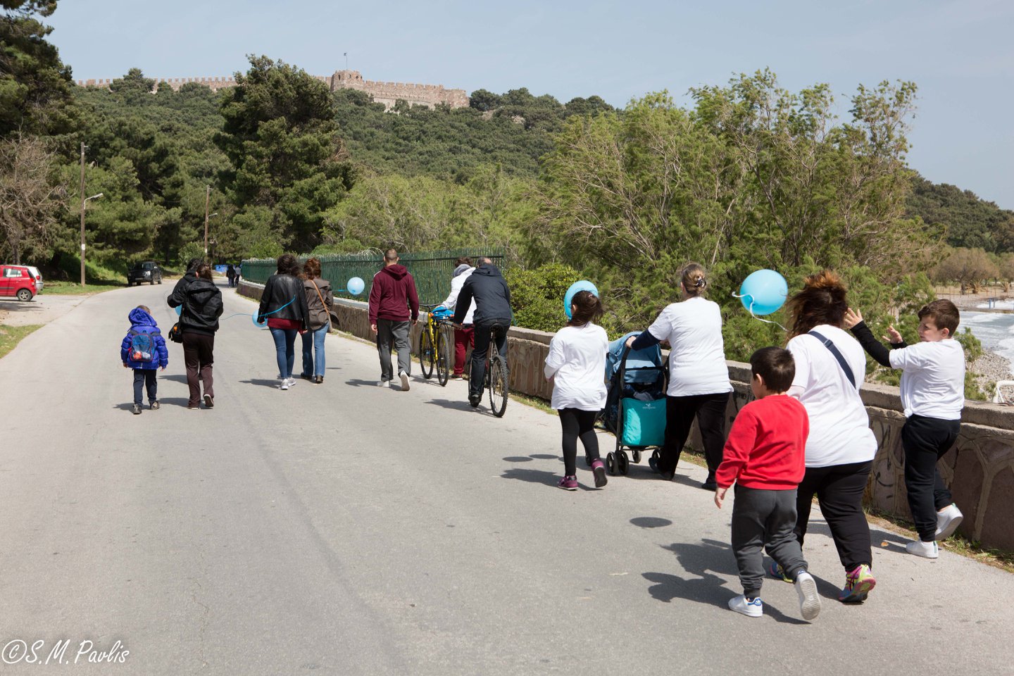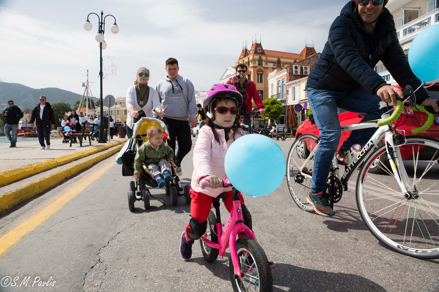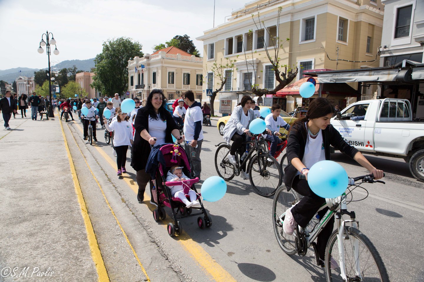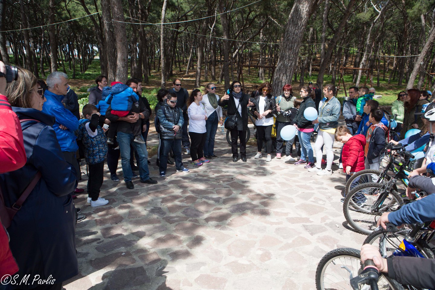 Αφού μαζευτήκαμε παιδιά και γονείς με ποδήλατα, καροτσάκια και πεζοί, ξεκινήσαμε με διπλή πορεία (τα ποδήλατα από τον δρόμο και οι πεζοί από το πεζοδρόμιο) από το παλιό Δημαρχείο και διασχίσαμε την προκυμαία με προορισμό το άλσος Τσαμάκια. Όταν φτάσαμε τα παιδιά ξεκουράστηκαν και είχαν την χαρά να γευτούν ένα δροσερό παγωτό. Πολλά πηγαδάκια και πολλές συζητήσεις με ανθρώπους που ήταν γεμάτοι χαμογέλα. Χαμόγελα γιατί ήμασταν απλά όλοι μαζί, γιατί κάναμε μια βόλτα όλοι μαζί, γιατί διασκεδάζαμε όλοι μαζί, γιατί ήμασταν όλοι ίσοι, όλοι διαφορετικοί αλλά και όλοι ίσοι!