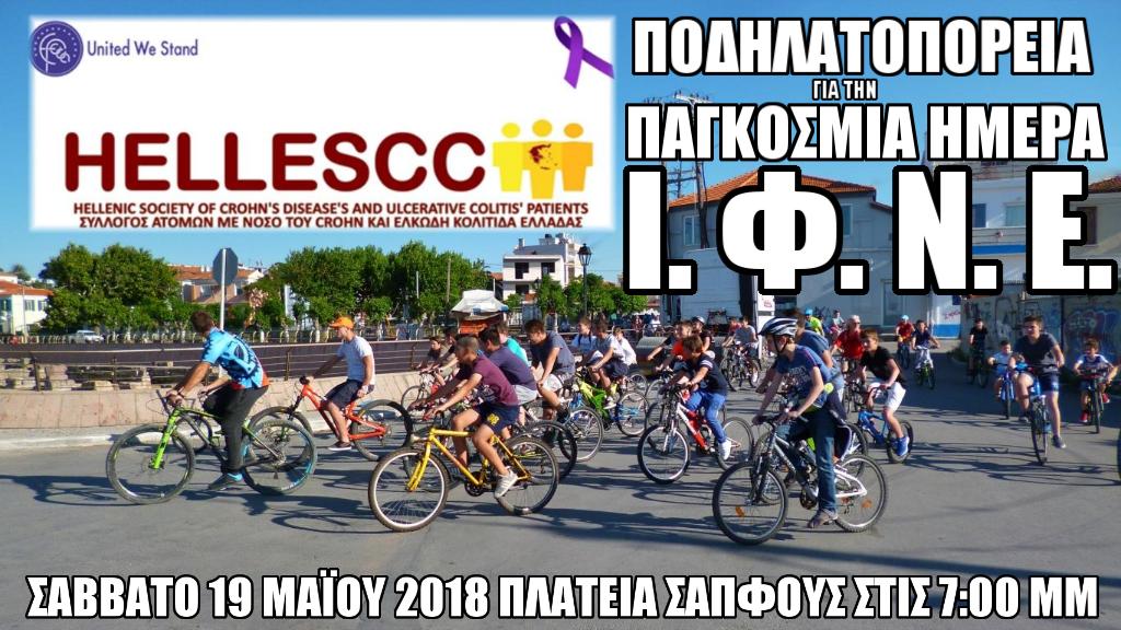 Το Σάββατο στις 19:00 στην Πλατεία Σαπφούς συγκεντρώθηκε ο Σύλλογος Λέσβου HELLESCC για τη Παγκόσμια μέρα ΙΦΝΕ (Ιδιοπαθή Φλεγμονώδη Νοσήματα του Εντέρου), μαζί με τον Ποδηλατικό Σύλλογο Λέσβου σε μια εκδήλωση συμπαράστασης. Εκεί τα μέλη των 2 συλλόγων συζήτησαν και έδωσαν έστω με την παρουσία τους αυτή τη μικρή ελπίδα συμπαράστασης και αλληλεγγύης σε μέλη και φίλοι του Συλλόγου Ατόμων με Νόσο του Crohn και Ελκώδη Κολίτιδα Ελλάδας - HELLESCC. Φωτογραφήθηκαν με φόντο το άγαλμα της Σαπφούς οι εκπρόσωποι των 2 συλλόγων που παραβρέθηκαν, σε φωτογραφίες που σήμερα θα ανεβούν παγκοσμίως στα μέσα κοινωνικής δικτύωσης (κάτω από τα hashtag #unitedwestand2018 και #worldibdday2018), κάνοντας παράλληλα γνωστή την πόλη μας και την κουλτούρα της Μυτιλήνης σε όλο τον κόσμο. Τα άτομα με ΙΦΝΕ ζουν πολεμώντας καθημερινά τα συμπτώματα της ασθένειάς τους και ελπίζουμε πως προσφέραμε έστω λίγες στιγμές ξενοιασιάς σε συνανθρώπους μας.