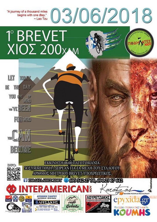 Το Brevet ξεκινούσε με ανάβαση στο Αίπος και αμέσως μετά στην Αμανή. Στη συνέχεια το έντονο ορεινό ανάγλυφο της Χίου προσέφερε συνεχείς ανηφόρες κατηφόρες, για να επιστέψει μετά από 200+ κοπιαστικά χλμ πάλι στην πόλη της Χίου . Πολύ απαιτητικό brevet, με άριστη όμως φιλοξενία από τους " Ποδηλάτες Χίου" που είχαν προβλέψει τα πάντα. Η άριστη οργάνωση και επάνδρωση των 4 κοντρόλ με πολύ φαγητό, τροφοδοσία νερού, συνέθεταν συνολικά μια επιτυχημένη διοργάνωση.