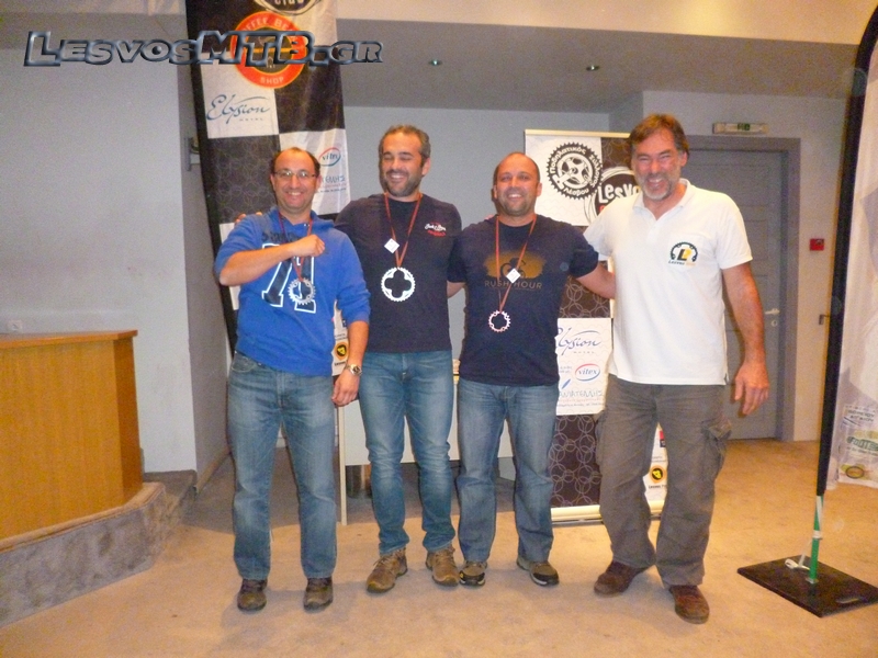 Επόμενη ήταν η μεγάλη στιγμή με τη βράβευση της "μεγάλης" κατηγορίας, ΗΤ Ανδρών, με πρώτο των πρώτων τον μεγάλο Γιώργο Σαραϊδάρη, 2ο τον Μαρίνο Σκορδομπέκη και 3ο τον Νίκο Πέππα αθλητή του Ποδηλατικού Συλλόγου Λέσβου.