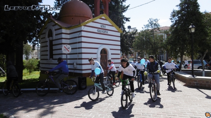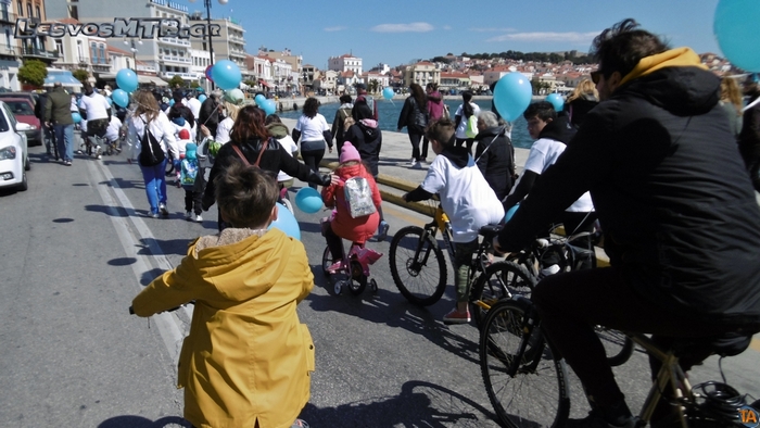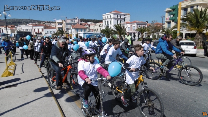 Με σύνθημα "Ο αυτισμός και το ποδήλατο μπορούν να γίνουν 2 καλοί φίλοι αρκεί να βρεθεί η ισορροπία" βρεθήκαμε για 2η συνεχή χρονιά μπροστά στο παλιό Δημαρχείο καλεσμένοι του συλλόγου "Συνεξέλιξη - Σύλλογος γονέων και φίλων ανθρώπων με αυτισμό - Λέσβος" να ποδηλατήσουμε μαζί με πεζούς στην προκυμαία της Μυτιλήνης στα πλαίσια της παγκόσμιας ημέρας Αυτισμού. Ο τελικός προορισμός μας άλλαξε λόγω του δυνατού αέρα και αντί για τα Τσαμάκια, κινηθήκαμε σε δρόμους που ο άνεμος δεν ήταν τόσο έντονος, έως το πάρκο του Αγ. Ευδόκιμου. Εκεί αφού συγκεντρώθηκε όλη η πορεία των ποδηλάτων και των πεζών που αριθμούσε πάνω από 200 άτομα, τα παιδάκια είχαν την ευκαιρία να δοκιμάσουν παγωτά από το κινητό παγωτατζίδικο του ζαχαροπλαστείου "Πανταζής" και να παίξουν με τα ποδήλατά τους. Η κα Τασούλα Σκούρτσου - Αναγνώστου πρόεδρος της "Συνεξέλιξης" έβγαλε ένα σύντομο λόγο κι αφού ευχαρίστησε όσους βοήθησαν στην διεξαγωγή αυτής της εκδήλωσης κάνοντας ειδική αναφορά στον Ποδηλατικό Σύλλογο Λέσβου, έκλεισε μ' ένα αλληγορικό παραμύθι. Στο τέλος της εκδήλωσης κληρώθηκε ποδήλατο από λαχνούς που είχαν προπωληθεί, το οποίο κέρδισε τυχερός ποδηλάτης από την Καλλονή.