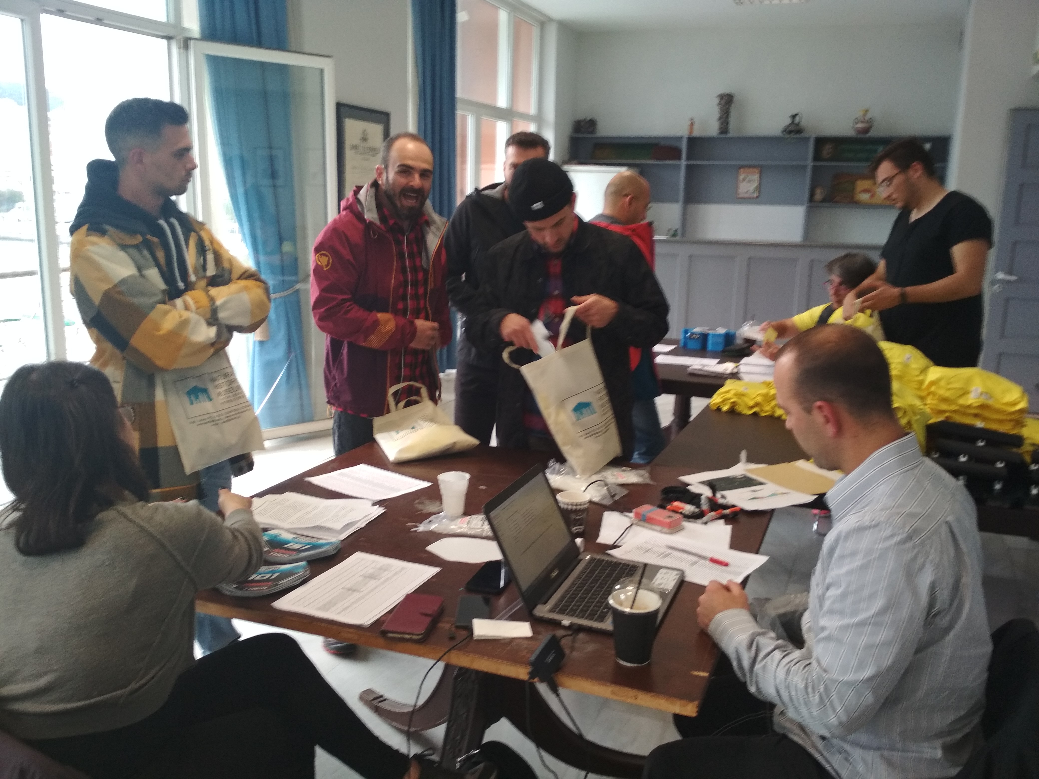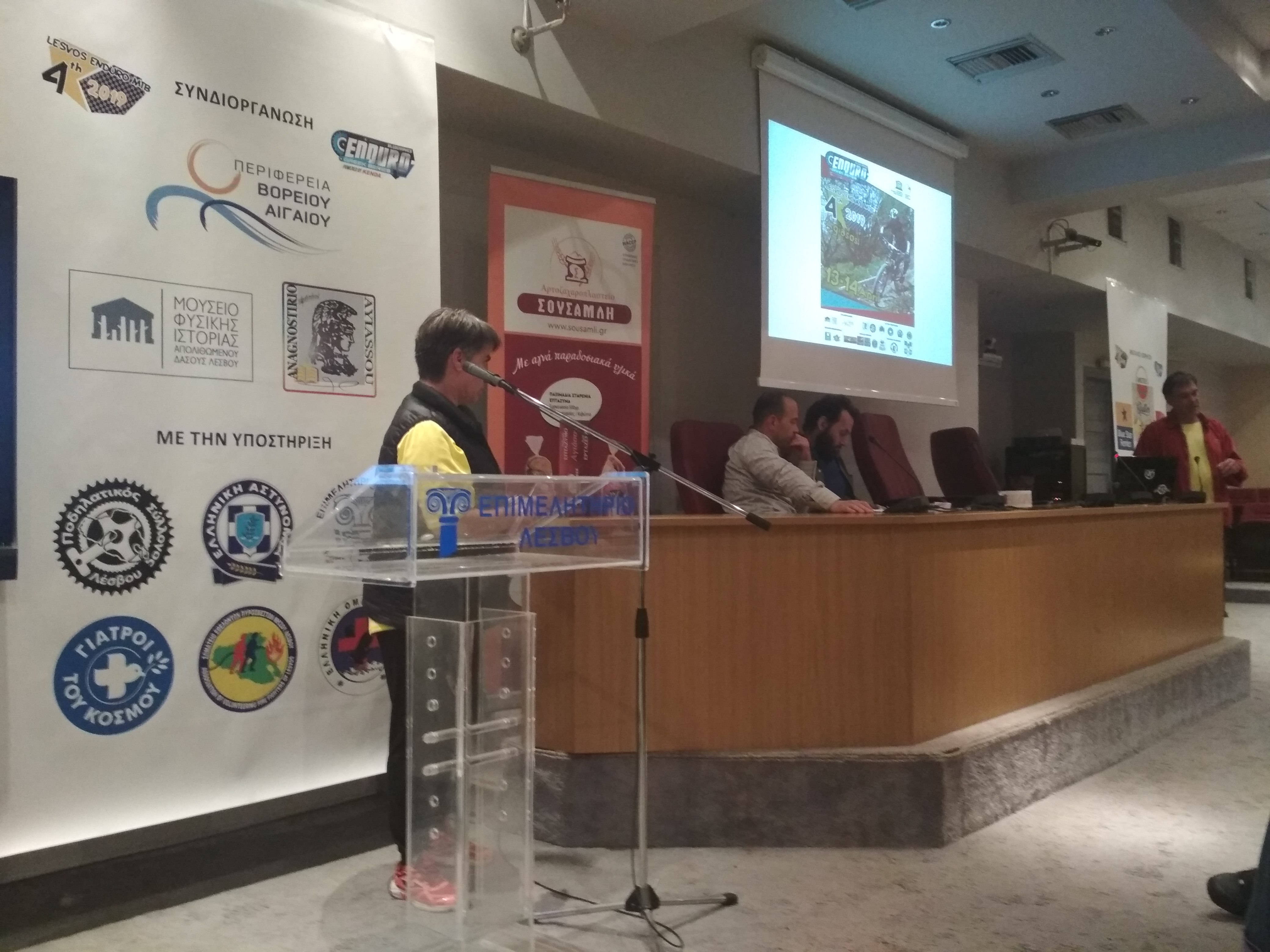 Παρασκευή 12/4/2019 ήταν η μέρα παραλαβής δώρων, πινακίδων, τσιπ χρονομέτρησης, ενημέρωσης αλλά και πάρτι. Από το απόγευμα μαζεύτηκαν όλοι οι αγωνιζόμενοι στο Εμπορικό Επιμελητήριο Μυτιλήνης για τα απαραίτητα διαδικαστικά της εγγραφής. Στις 20:00 άρχισε η ενημέρωση για τον αγώνα... κι εκεί είδαμε κάτι ξεχωριστό... Με 185+ εγγραφές ήταν φυσικό στην αίθουσα του εμπορικού επιμελητηρίου Μυτιλήνης να επικρατήσει το αδιαχώρητο. Μετά την ολοκληρωμένη ενημέρωση στα Ελληνικά αλλά και στα Αγγλικά μιας και μεγάλος είναι και ο αριθμός συμμετεχόντων από άλλες χώρες, συνεχίσαμε στο μπαράκι Beja στα Λαδάδικα της Μυτιλήνης προσκεκλημένοι του Sigri Brewery. Εκεί κεραστήκαμε τις Λεσβιακές μπύρες Nissiopi και Sedousa. Το αδιαχώρητο και στο δρόμο έξω από το μικρό μπαράκι από το μεγάλο αριθμό των προσκεκλημένων. Το πάρτι κράτησε μέχρι αργά... όσο αργά τέλος πάντων επιτρέπεται σε αθλητές που έχουν αύριο αγώνα...