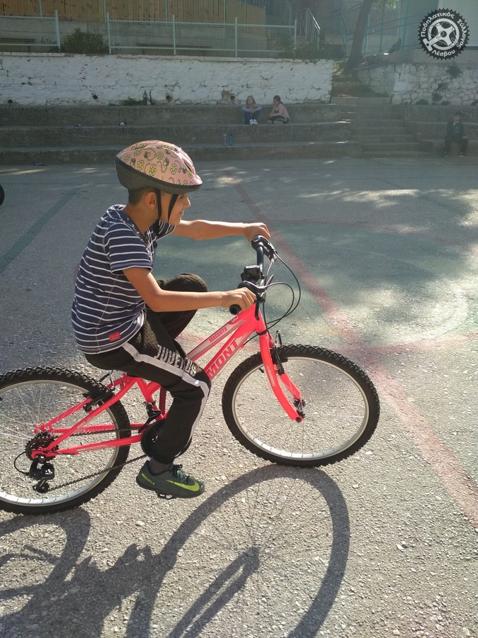 Στις μεγάλες τάξεις μοιράστηκαν φυλλάδια ασφαλής οδήγησης και όλοι πήραν αναμνηστικό το αυτοκόλλητο του Πο. Συ. Λέσβου για το ποδήλατο τους.