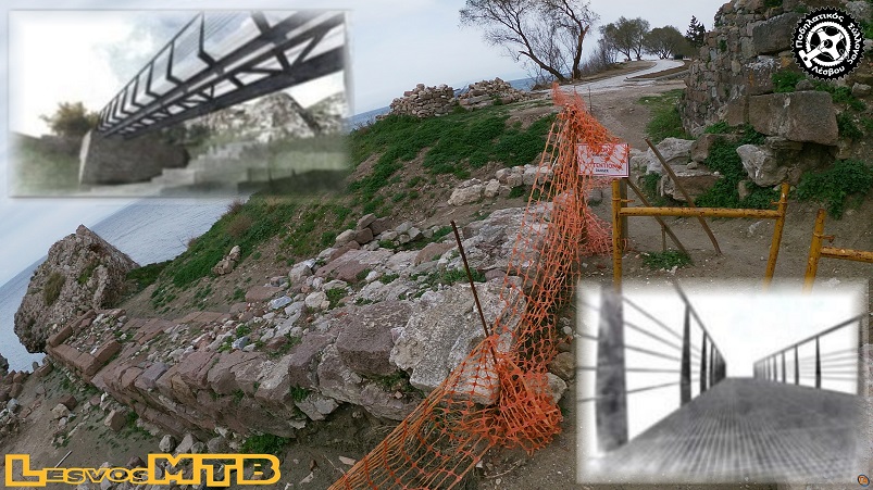 Οι ενστάσεις μας σ' αυτό το θέμα αρκετές... Κατ αρχήν πιστεύαμε πως μια υπηρεσία όπως η Αρχαιολογία θα θεωρεί απαράδεκτες τις μεταλλικές κατασκευές που με τίποτα δεν εναρμονίζονται με αρχαιολογικό χώρο. Στις αρχικές μας προτάσεις είχαμε κάνει αναφορά για μια ξύλινη κατασκευή που νομίζουμε θα ταίριαζε καλύτερα στο χώρο. Δεύτερο σημείο της ένστασής μας είναι το πλάτος! Ένα μέτρο (ας ευχηθούμε το εσωτερικό) είναι κάτω του επαρκούς για να περάσει ένα ποδήλατο με τιμόνι 75-80 εκατοστών. Αυτό απαιτεί εξαιρετική ακρίβεια από τους περισσότερους και λεπτομερή χειρισμό από μεγάλους αλλά και παιδιά που μάλλον πρέπει να αποφευχθεί πάνω σε μια τόσο στενή γέφυρα! Και φυσικά δεν μιλάμε για αντιθέτως ερχόμενο ποδήλατο ή και πεζό... γιατί σε κάποια από αυτές τις περιπτώσεις θα πρέπει κάποιος να ... βάλει "όπισθεν". Σίγουρα όχι το πιο ασφαλές σενάριο! Αλλά και για τους πεζούς, το ένα μέτρο είναι μη επαρκές. Φανταστείτε έναν γονιό να πρέπει ναπεράσει χέρι χέρι με το παιδί του! Ή ακόμα και να συναντηθούν 2 πεζοί πάνω στη γέφυρα, το ένα μέτρο δεν είναι σε καμία από τις παραπάνω περιπτώσεις επαρκές ενώ είναι προφανές ότι είναι και επικίνδυνο! Δεν προτείνουμε γέφυρα "λεωφόρο", που θα "επιβληθεί" στο τοπίο, αλλά το ένα μέτρο σε κάθε πιθανή περίπτωση είναι αρκετά κάτω του αποδεκτού! Ήδη απ' τα σχέδια φαίνεται να έχει αφεθεί ανοιχτό το σενάριο "διαπλάτυνσης" κι αναρωτιόμαστε σ' αυτό το σημείο, γιατί δεν γίνεται εξ' αρχής;