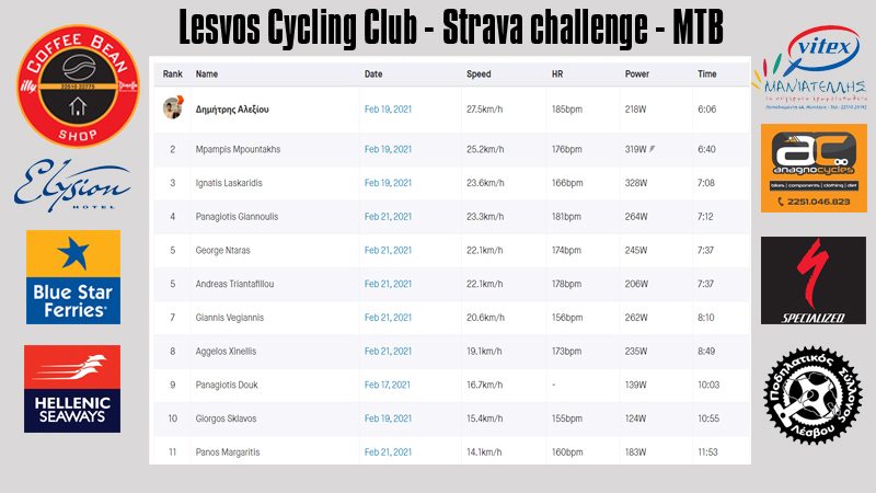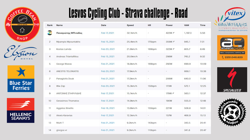 Lesvos Cycling Club Challenge Αποτελέσματα
