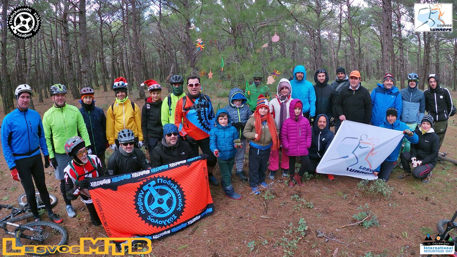 500 μέτρα ψηλότερα, 50 λεπτά αργότερα και μόλις 5 χιλιόμετρα μακριά, στην Παναγία της Αμαλής, περίμεναν κι άλλοι φίλοι-μέλη του Ποδηλατικού Συλλόγου Λέσβου, με τις οικογένειες τους κι αφού όλοι μαζί κεράστηκαν γλυκά, μελομακάρονα και κουραμπιέδες από το Ζαχαροπλαστείο "Γαρδένια", το παραδοσιακό τσάι του Πο.Συ.Λε. φτιαγμένο με τη μυστική συνταγή του Μπάμπη Αράπη και τη ζεστή σούπα της Ιουλίας Αγιαμαρνιώτη του Lesvos Ride, παρακολούθησαν τον τερματισμό του αγώνα ορεινού τρεξίματος "Amali Trail & Run" και τις βραβεύσεις των νικητών. 40 υπερθαρραλέοι ορεινοί δρομείς αψήφησαν το πολικό ψύχος και έτρεξαν στις 2 διαδρομές του αγώνα. Αμέσως μετά συγκεντρωθήκαμε μικροί κυρίως και μεγάλοι γύρω από ένα νεαρό πεύκο στο χώρο της Παναγίας Αμαλής και το στολίσαμε με Χριστουγεννιάτικα οικολογικά στολίδια. Απίστευτη η χαρά των παιδιών στο στολισμό του πραγματικού δέντρου, πολύ σωστό το μήνυμα για οικολογικά στολίδια και ιδιαίτερα μεγάλη η σημασία στον στολισμό δέντρου πάνω στο βουνό, που δεν κόπηκε και δεν κατέληξε σε κάποιο σαλόνι! Στο στολισμό συνέβαλαν εκτός από πολλά παιδιά, μέλη του Ποδηλατικού Συλλόγου Λέσβου και μέλη του συλλόγου ορεινού τρεξίματος "Lesvos Runners".