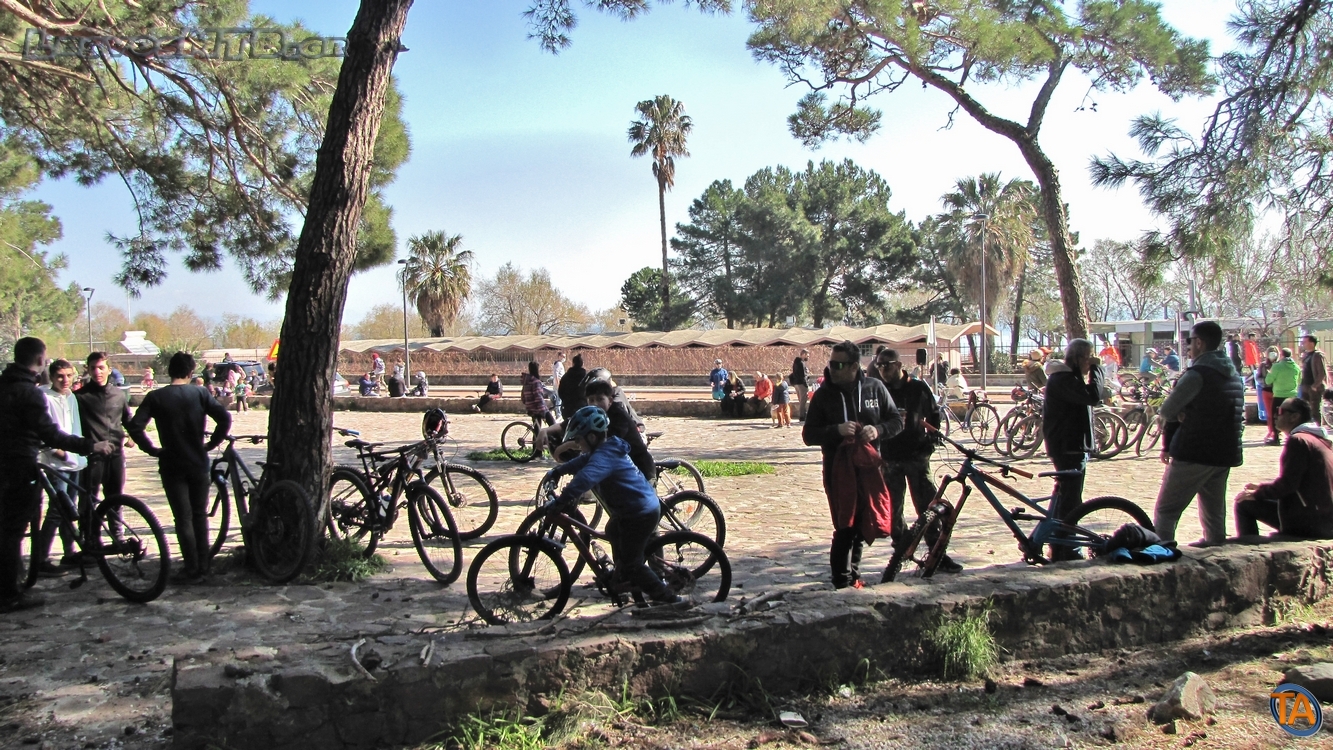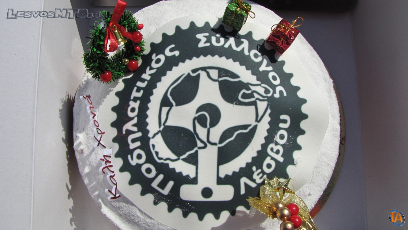 Η πίτα κόπηκε συμβολικά στο τοιχίο που χωρίζει τον δρόμο από το άλσος, δείχνοντας έτσι οτι ο Ποδηλατικός Σύλλογος Λέσβου τοποθετείται ισόποσα ανάμεσα στο δρόμο και το βουνό αλλά και δίπλα στον ποδηλατόδρομο, κρατόντας όμοιες αποστάσεις από ποδηλασία δρόμου, αστική και ορεινή!