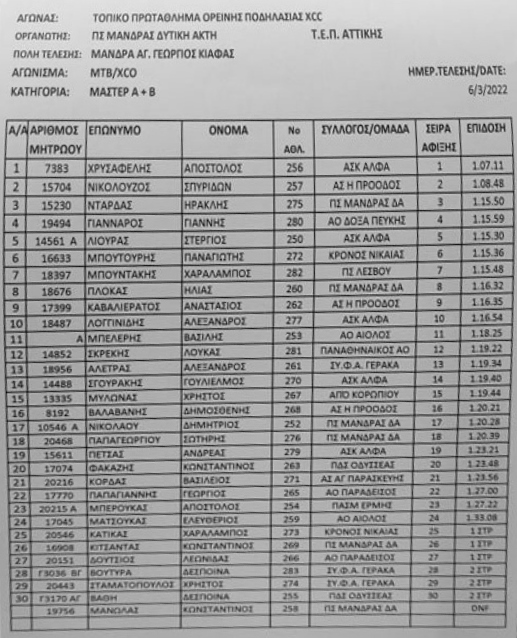 Στον Άγιο Γεώργιο Κιάφα στη Μάνδρα διεξήχθη την Κυριακή 6/3/2022 το τοπικό πρωτάθλημα ορεινής ποδηλασίας XCC, σε διοργάνωση ΠΣ Μάνδρας Δυτική Αττική.