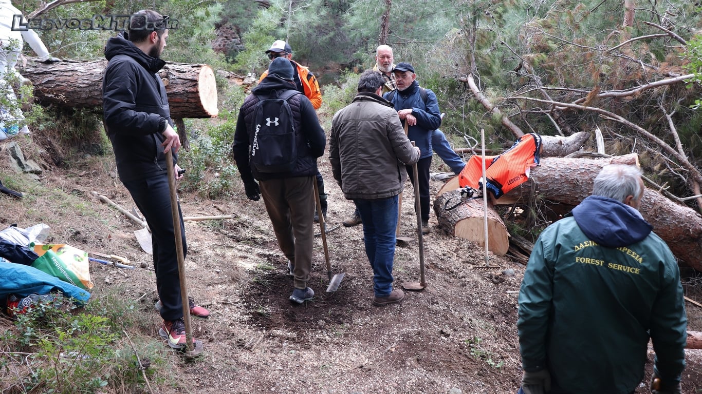 Πέρυσι εκεί είχε πέσει τεράστιο δέντρο 65 ετών με τεράστιο κορμό και είχε κλείσει εντελώς το τέλος του μονοπατιού, κάνοντάς το απροσπέλαστο. Φέτος και μετά το κόψιμο του μεγάλου κορμού έπρεπε να διαμορφωθεί εκ νέου νέα γραμμή μια και όλος ο όγκος του δέντρου είχε πέσει ακριβώς μέσα στο παλιό μονοπάτι και δεν υπάρχει τρόπος πλέον ούτε να κοπεί, ούτε να μετακινηθεί. Η βλάστηση στην περιοχή είναι πλούσια και πάρα πολύ πυκνή. Ο όγκος του δέντρου τεράστιος. Οι άνθρωποι του Δασαρχείου που μας συνόδεψαν σε όλη την εκδήλωση, εκτίμησαν το βάρος του, στους 8 τόνους.