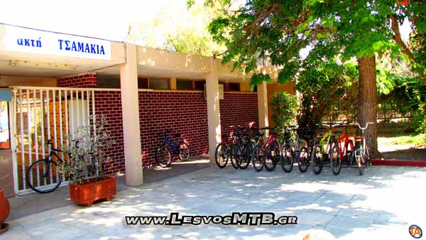 Μια ευχάριστη έκπληξη αντιμετωπίσαμε στον αύλειο χώρο της πλαζ Τσαμάκια, όταν διαπιστώσαμε ότι δεν υπάρχει ελεύθερος χώρος για να παρκάρουμε το ποδήλατό μας... Οι 10 θέσεις στάθμευσης ήταν γεμάτες και ταυτοχρόνως υπήρχαν και πολλά ποδήλατα που ήταν τριγύρω παρκαρισμένα και ακόμα περισσότερα έξω κλειδωμένα πάνω στα κάγκελα !!!