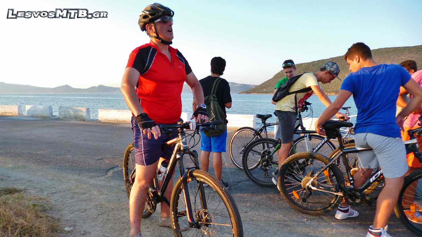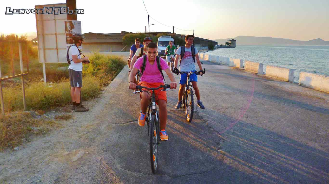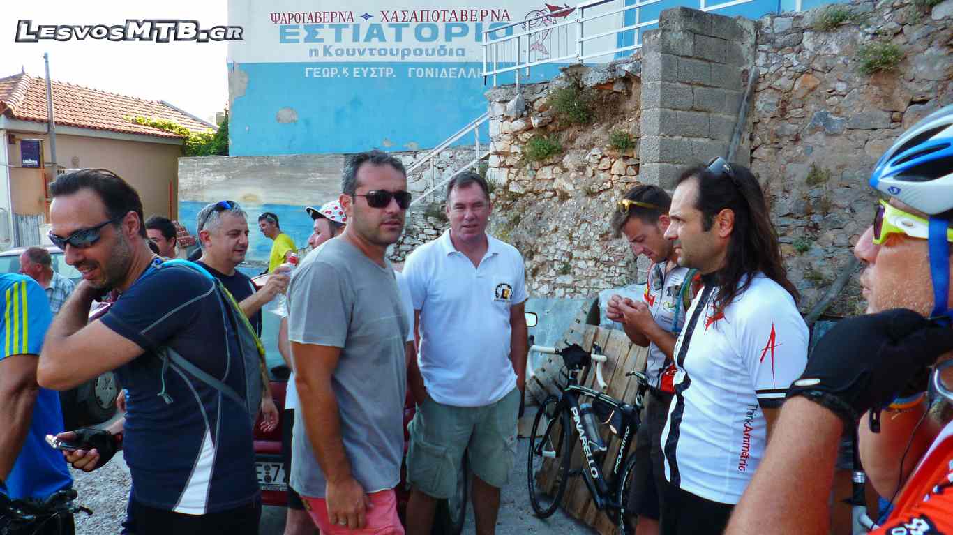 Η θερμοκρασία μεγάλη, παρόλη την επιλογή απογευματινής ώρας. Τα θερμόμετρα περνούσαν τους 30 βαθμούς, η πρώτη ανηφόρα των Λουτρών μαζί με τον δυνατό ήλιο έκανε πολλούς να "λυγίσουν" από την αρχή... Ευτυχώς όμως μετά από 4 χιλιόμετρα ακολουθούσαν λίγο πιο "ήπιες" κλίσεις για να κορυφωθούν πάλι λίγο πριν μπούμε στην "εθνική". Το Van "σκούπα" του Lesvos Ride φόρτωνε συνεχώς ποδήλατα κι επιβάτες! Όλη αυτή την ώρα είχαμε στα αριστερά μας τον κόλπο της Γέρας και απέναντι τα βουνά της Γέρας... Τοπίο μαγευτικό, με καλή παρέα ξεχνούσες και ανηφόρες και ήλιο και ζέστη... Η διοργάνωση άψογη, εθελοντές σε κάθε διασταύρωση μας καθοδηγούσαν, έκοβαν την κυκλοφορία των αυτοκινήτων και μας τροφοδοτούσαν νερό και μπανάνες.