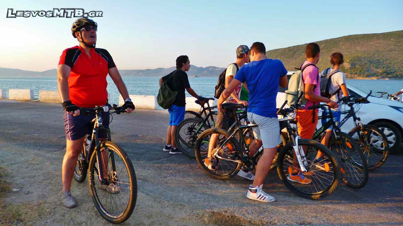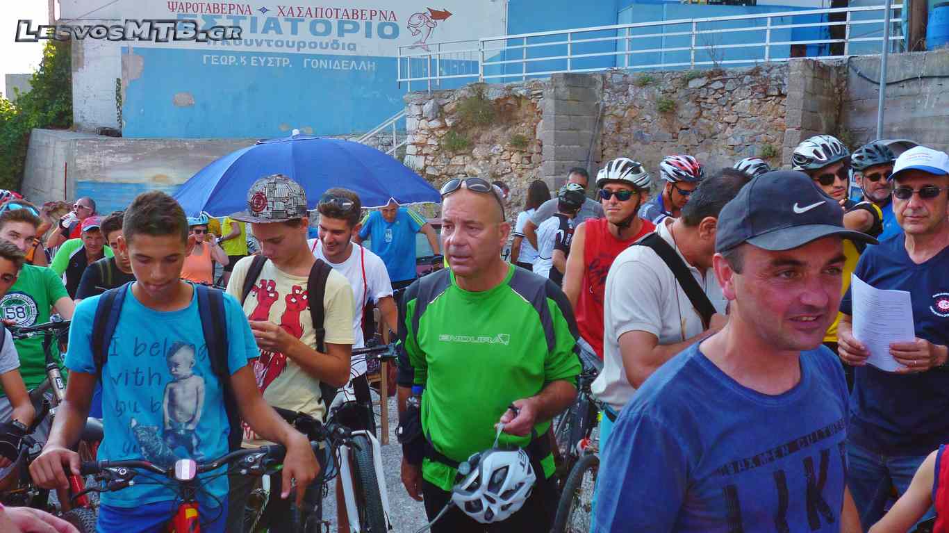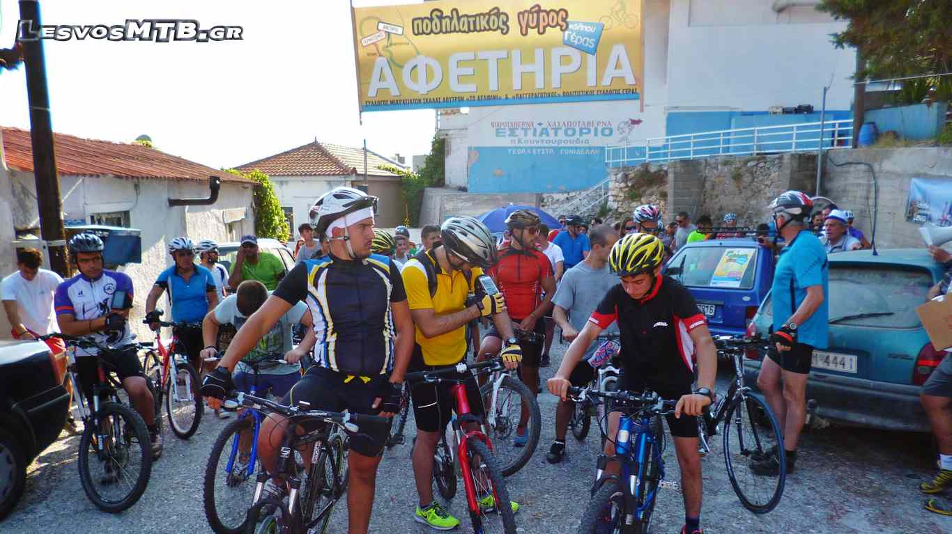 Η θερμοκρασία μεγάλη, παρόλη την επιλογή απογευματινής ώρας. Τα θερμόμετρα περνούσαν τους 30 βαθμούς, η πρώτη ανηφόρα των Λουτρών μαζί με τον δυνατό ήλιο έκανε πολλούς να "λυγίσουν" από την αρχή... Ευτυχώς όμως μετά από 4 χιλιόμετρα ακολουθούσαν λίγο πιο "ήπιες" κλίσεις για να κορυφωθούν πάλι λίγο πριν μπούμε στην "εθνική". Το Van "σκούπα" του Lesvos Ride φόρτωνε συνεχώς ποδήλατα κι επιβάτες! Όλη αυτή την ώρα είχαμε στα αριστερά μας τον κόλπο της Γέρας και απέναντι τα βουνά της Γέρας... Τοπίο μαγευτικό, με καλή παρέα ξεχνούσες και ανηφόρες και ήλιο και ζέστη... Η διοργάνωση άψογη, εθελοντές σε κάθε διασταύρωση μας καθοδηγούσαν, έκοβαν την κυκλοφορία των αυτοκινήτων και μας τροφοδοτούσαν νερό και μπανάνες.